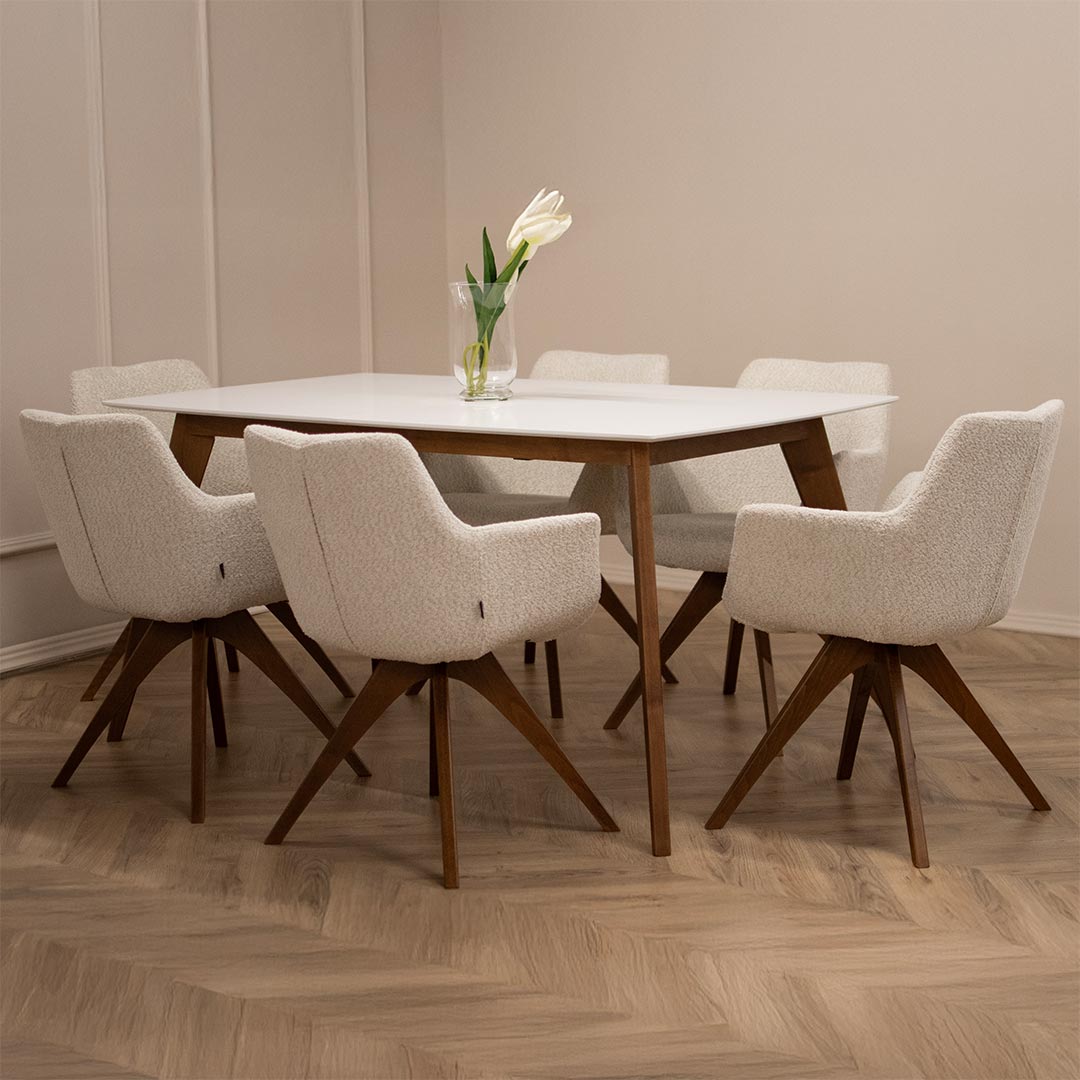 Стол Керол е совршен избор за оние кои бараат удобност и стил. Со својата метална конструкција во внатрешноста на седлото и дрвените ногарки, оваа столица обезбедува издржливост и квалитет што ќе траат со години. Преку палетата на различни материјали и бои, можете лесно да ја вклопите во вашиот ентериер. Достапна е и во варијанта со метални ногарки, што дополнително ја збогатува нејзината естетика.