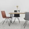 Столицата со метални ногари е изработена со посебен акцент на уникатен дизајн и врвна удобност. Седиштето е конструирано од цврст метал, целосно тапацирано со висококвалитетен мебел штоф, кој обезбедува мекост и елеганција. Понудата вклучува широк спектар на бои за металните компоненти и мебел штофот, што Ви овозможува да креирате трпезариска столица која совршено ќе се вклопи во Вашиот ентериер. Овој производ комбинира современ стил и функционалност, правејќи го идеален за секој дом или деловен простор.
