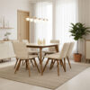 Минималистички стил на столица, која е доказ дека удобноста и дизајнот одат заедно. Столот Зои е изработен од метална контрукција, целосно прекриена со висококвалитетен мебел штоф, карактеристичен по квадратни штепови. Одличен избор за помали трпезарии, ресторани или барови. Може да се комбинира со трпезариска маса Ригел, која ги има истите коси ногари. Дизајнирани коси ногари од масивно дрво бука или даб, дополнително влијаат на стабилноста и квалитетот. Трпезариската столица Зои е достапена и со метални ногари.